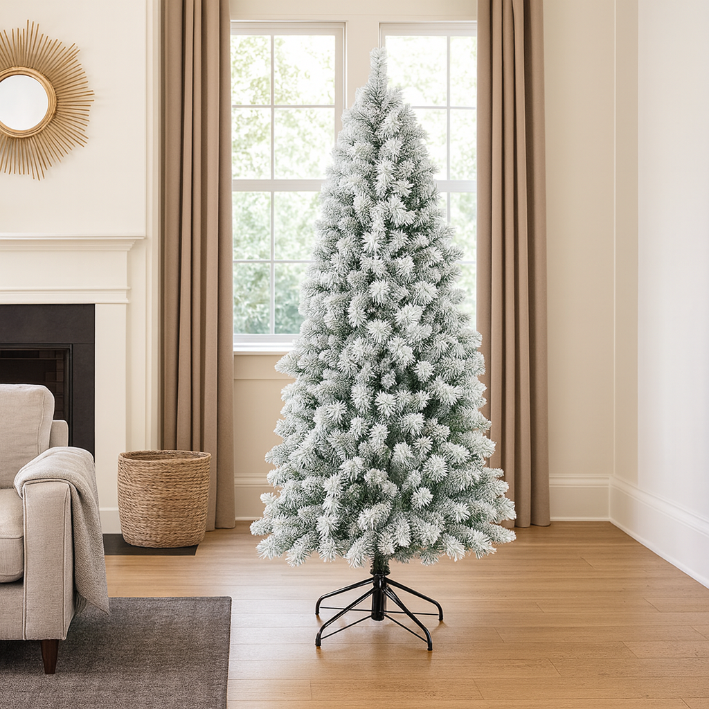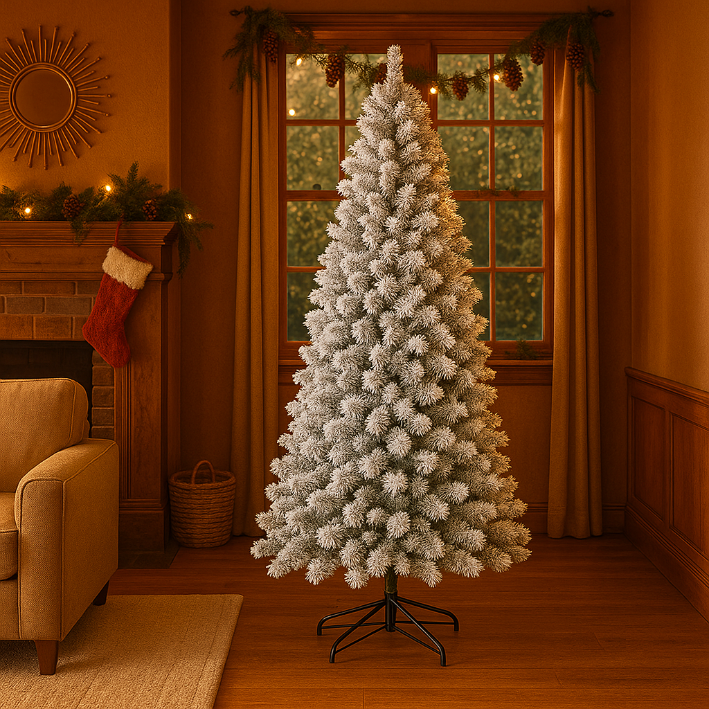 Transform your holiday celebrations with the stunning 7ft Flocked Christmas Tree, an exquisite choice for those who desire both elegance and tradition in their Christmas décor. This beautifully crafted artificial tree brings the charm of freshly fallen snow into your home, creating a magical, winter wonderland atmosphere.