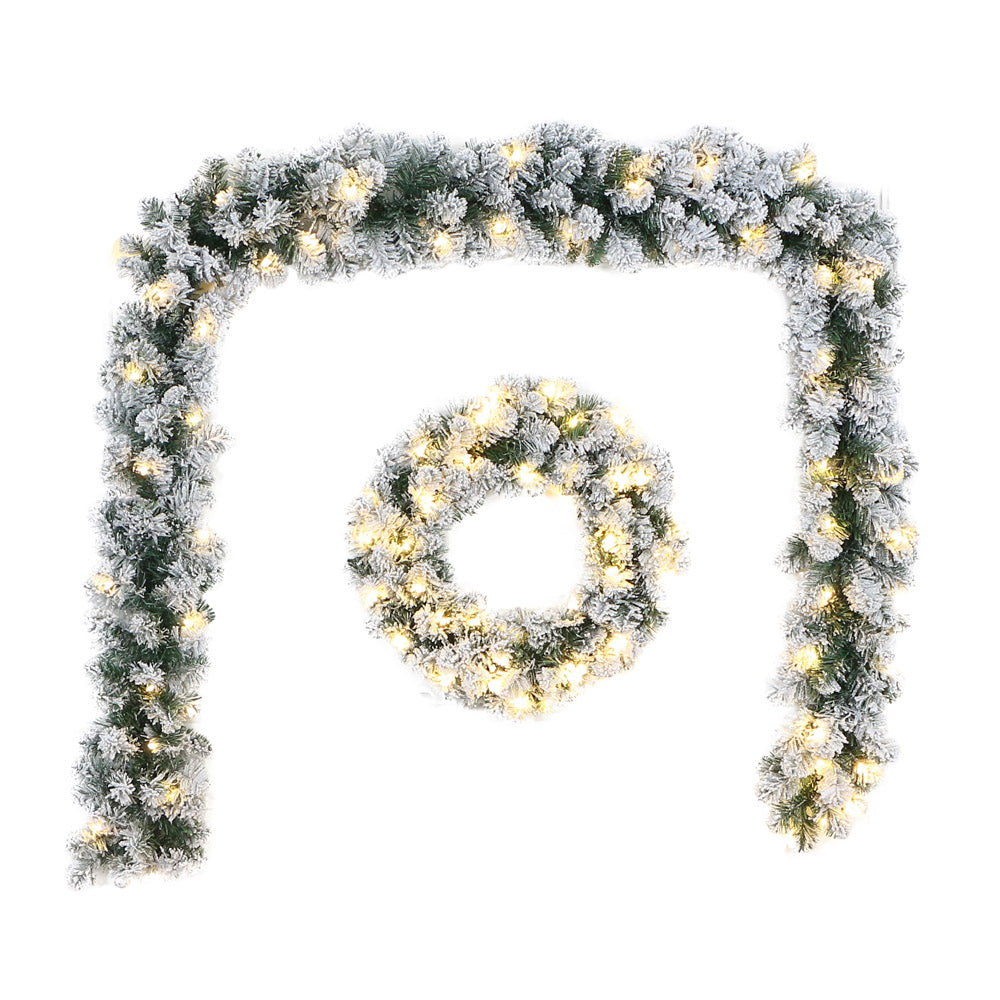 Bring timeless festive elegance to your home with the Flocked 9ft Garland & Wreath Set, a beautifully coordinated duo designed to infuse your space with warmth, charm, and classic Christmas style. Featuring a lush, snow-dusted appearance and soft LED lighting, this set perfectly balances traditional beauty with modern convenience.