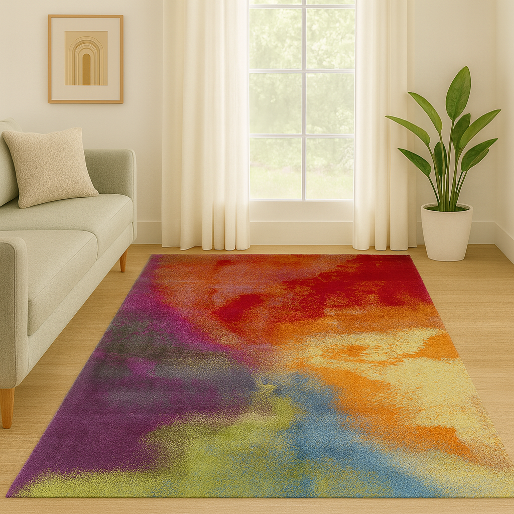 Colour and pattern variety: From bold abstracts and rainbow tones to patchworks, diamond motifs and mosaic styles. These rugs combine multiple hues for visual depth and excitement.