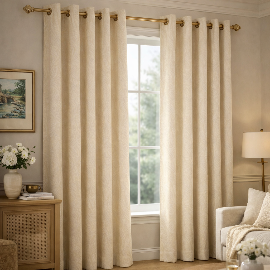Crafted with interlining, they offer enhanced insulation, improved light control, and a fuller, more luxurious drape. The neutral beige/cream shade creates a bright yet cosy atmosphere, making them a versatile choice for living rooms, bedrooms, or dining spaces.